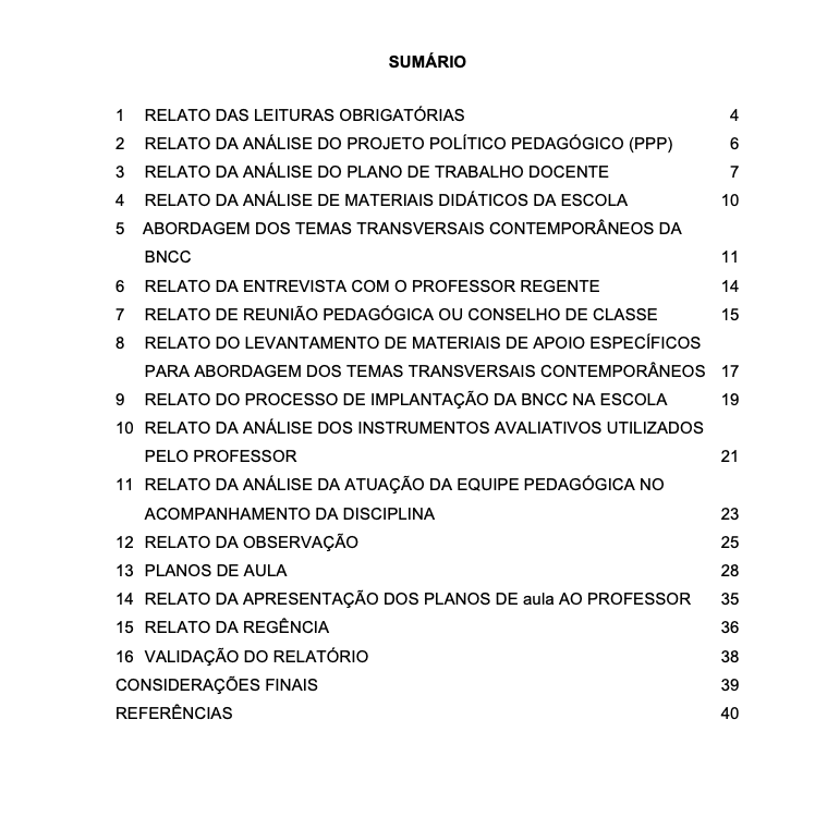 ·    Componente exclusivo do Relatório dos Estágios de Regência.